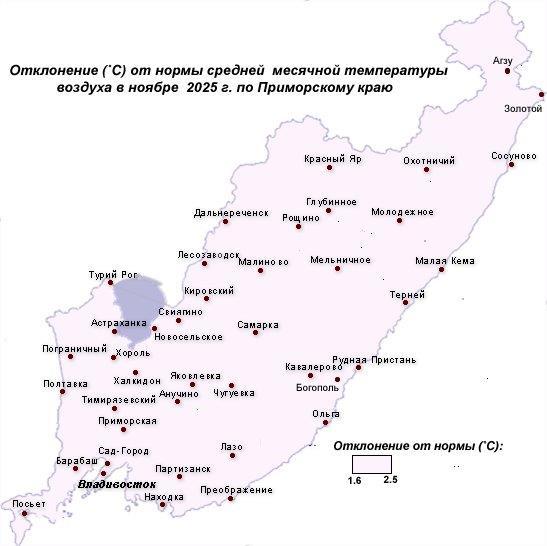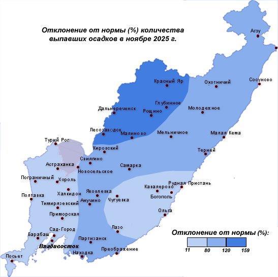 Ноябрь-2025 в Приморье выдался теплым с неравномерным распределением осадков по территории.