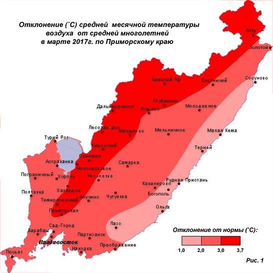 Минувший март оказался экстремально тёплым, сухим в северной половине Приморского края и более влажным на юге.