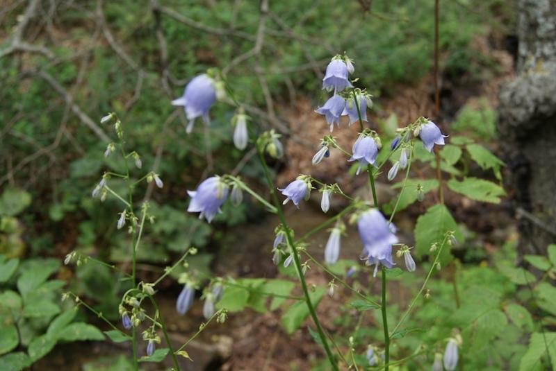 На морской террасе бухты Удобной (Благодатное) серебрятся в изобилии головки эдельвейса Палибина. Среди них краснеют алые китайские гвоздики, пронзительно синие ширококолокольчики крупноцветковые. Вот колокольчик ещё не распустился и выглядит, как коробочка-шкатулка — широкие синие лепестки вот-вот распахнутся, и коробочка превратится в прекрасный цветок. Неподалёку роскошно цветёт пышный куст горца Юрия. Его мелкие белые цветы источают очень приятный медовый запах.