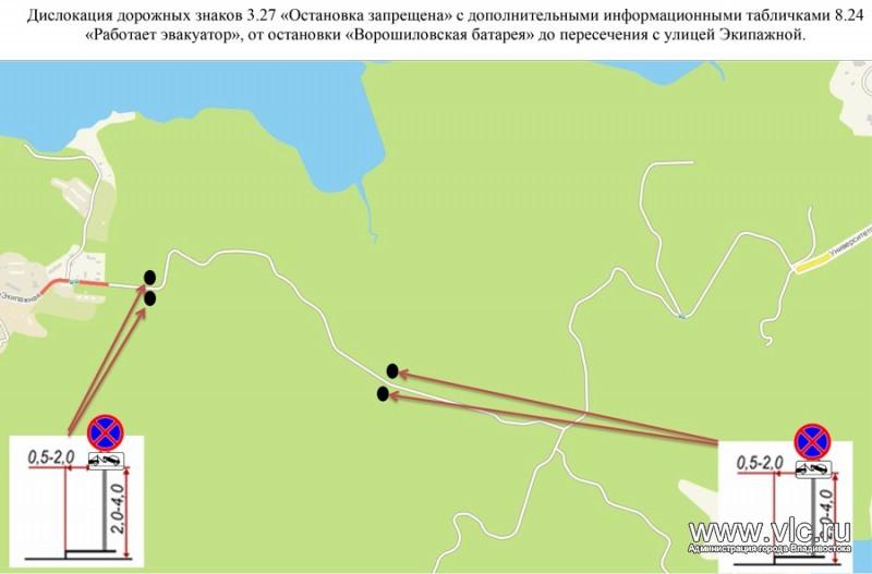 На грунтовой дороге от остановки «Ворошиловская батарея» до пересечения с улицей Экипажной на острове Русском запретили парковать автомобили. Вчера, 27 ноября, специалисты муниципального предприятия «Содержание городских территорий» установили здесь соответствующие дорожные знаки.