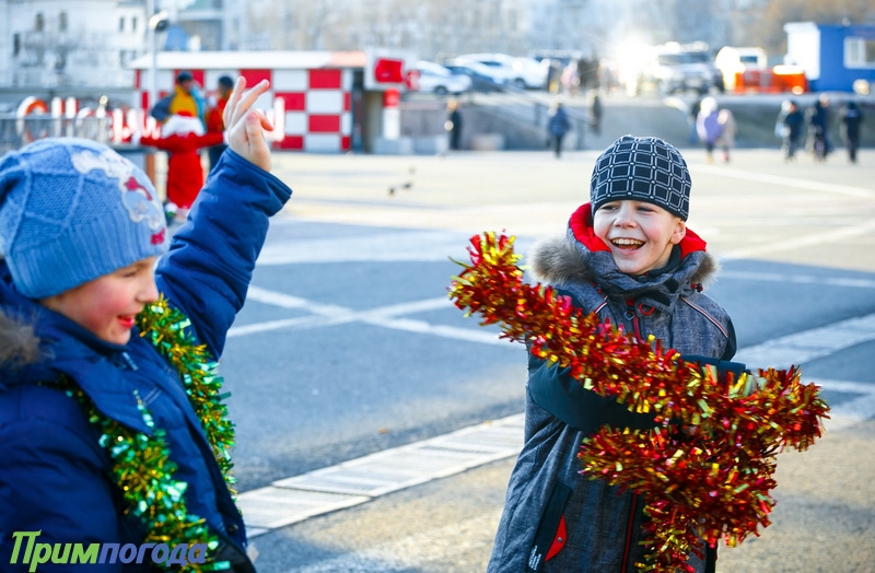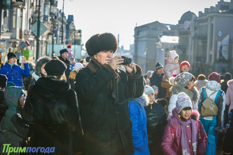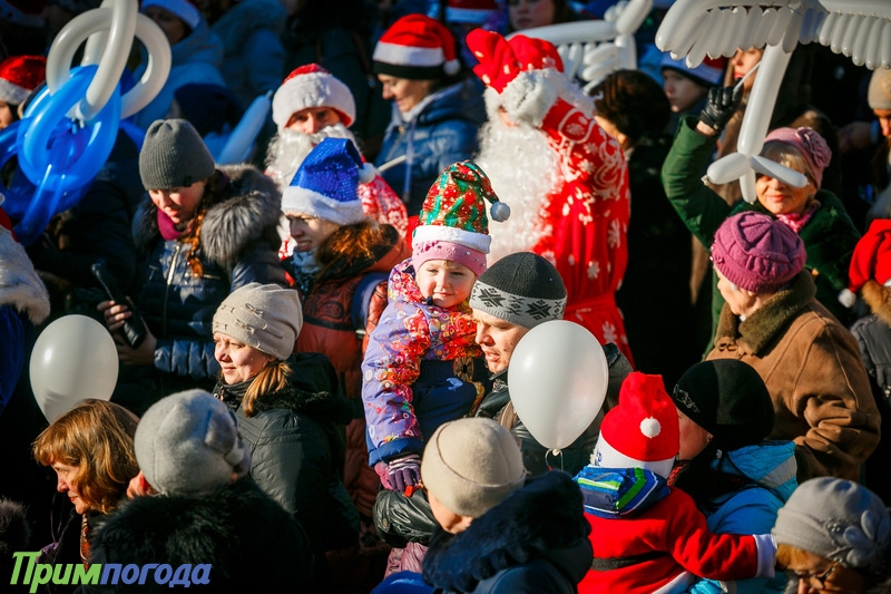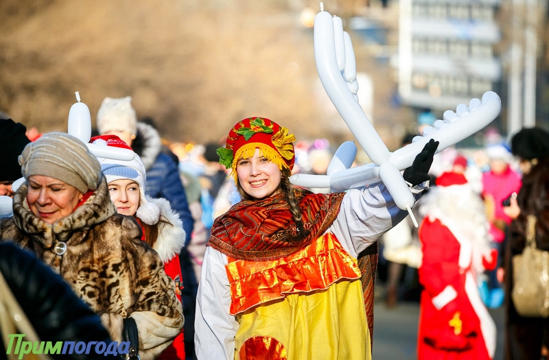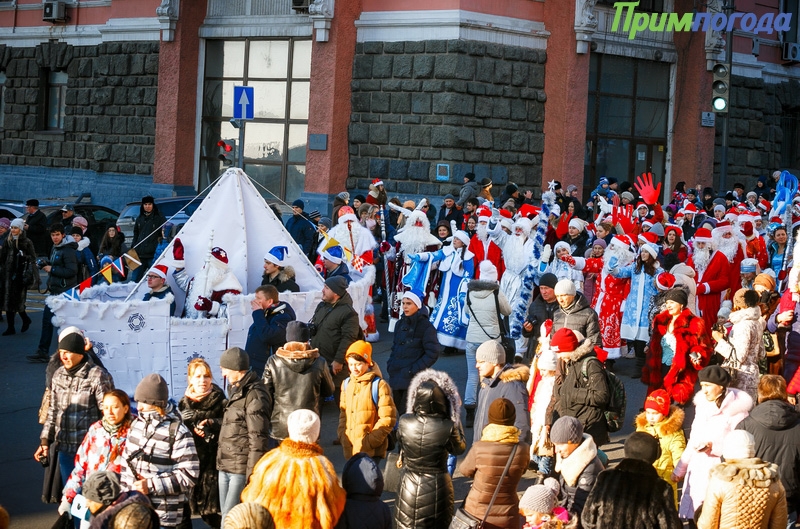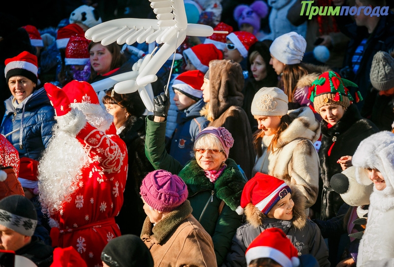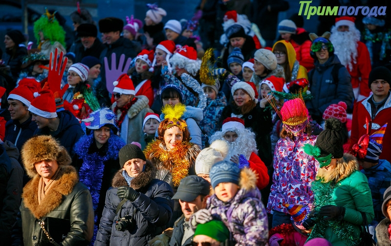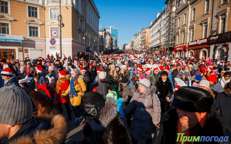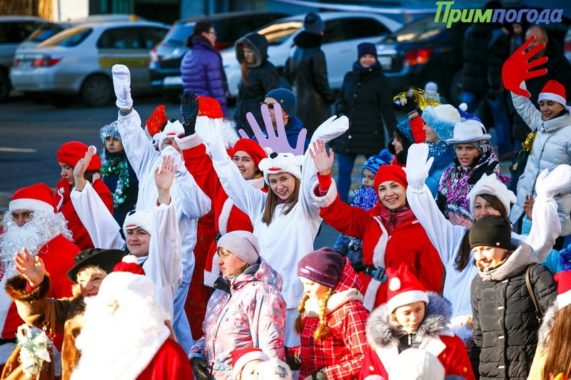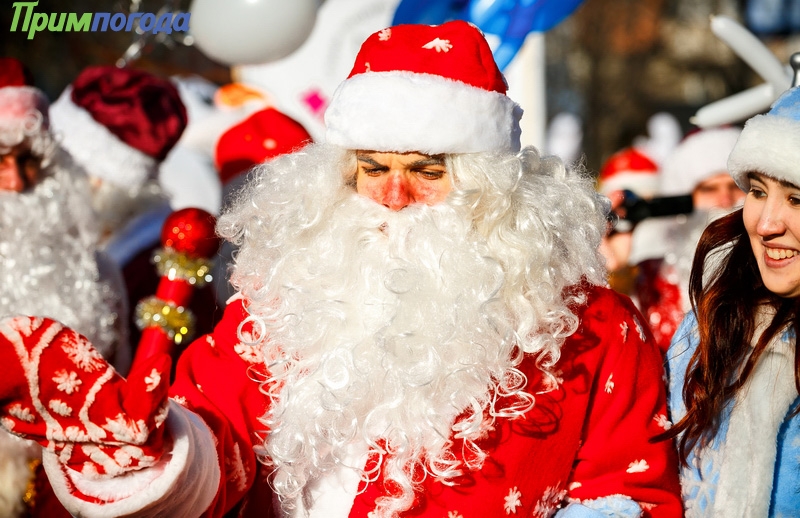 В субботу, 19 декабря, во Владивостоке впервые состоялось праздничное шествие Дедов Морозов. По Океанскому проспекту прошли порядка тысячи горожан и гостей города всех возрастов — Деды Морозы, Снегурочки, их сказочная свита и все желающие. Самых юных участников в костюмах Дедов Морозов родители везли в колясках.
