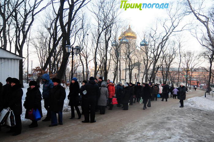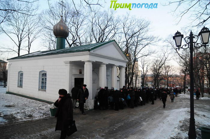 Желающих окунуться в купель у Покровского кафедрального собора оказалось немало. Здесь же можно было набрать святой воды. По церковным учениям, она не теряет своей святости, не портится и обладает способностью исцелять больных.