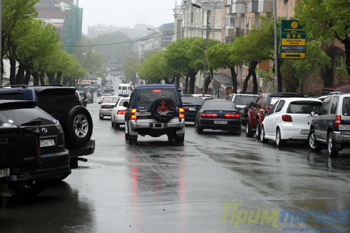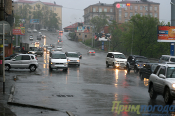 Сильный дождь, начавшийся сегодня ночью во Владивостоке, к утру создал определенные проблемы для автомобилистов и жителей низинных районов города. Привычные грязные реки на Школьной, Луговой и Фокина заставили машины встать в пробки, а людей поупражняться в искусстве прыжков через лужи...