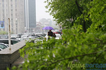 А когда дождь превратился в морось, столь привычную для владивостокцев водяную смесь в воздухе, только-только зазеленевшие деревья предстали перед прохожими во всей своей свежей чистоте!